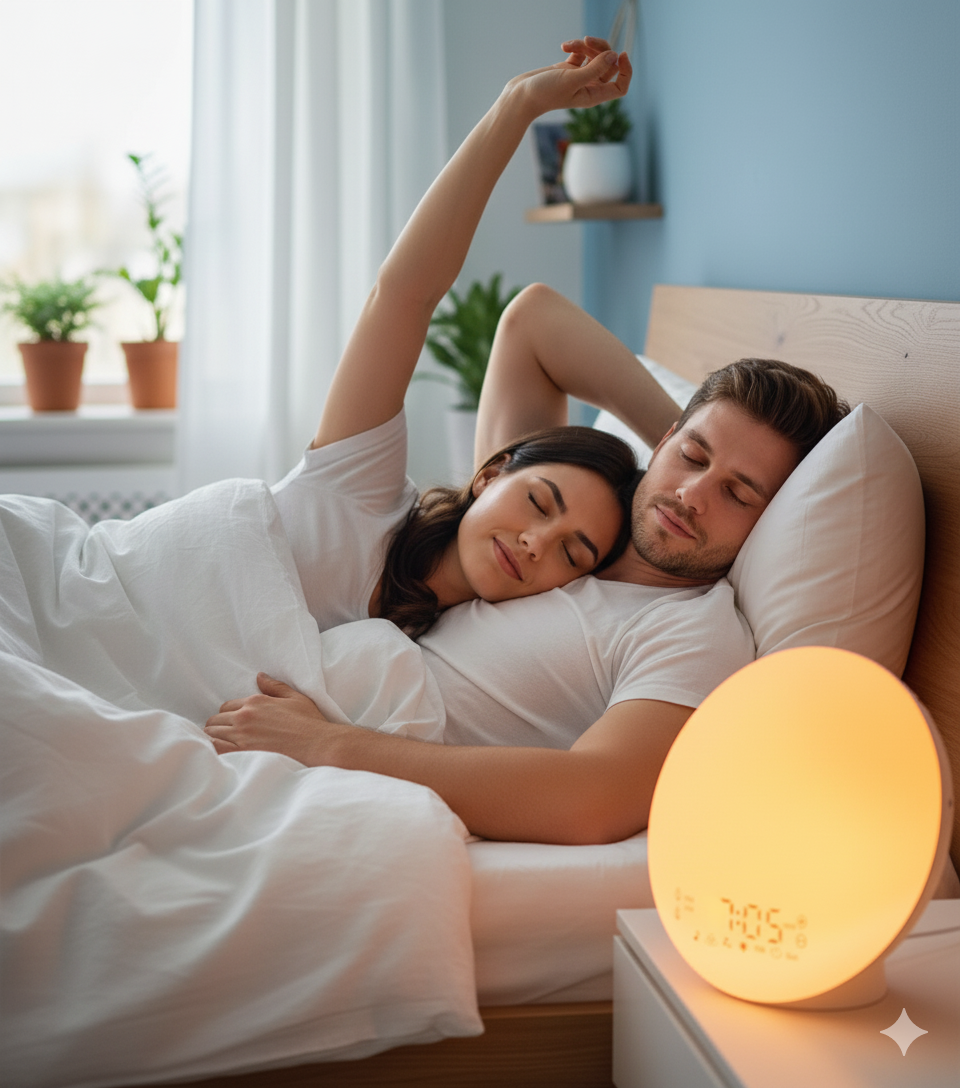 Luz que sube poco a poco, como si el sol se hubiera colado en tu cuarto. Mientras tanto, tu cuerpo despierta sin sobresaltos. Y tu humor lo nota: empiezas el día sin la sensación de haber sobrevivido a una sirena de incendio.